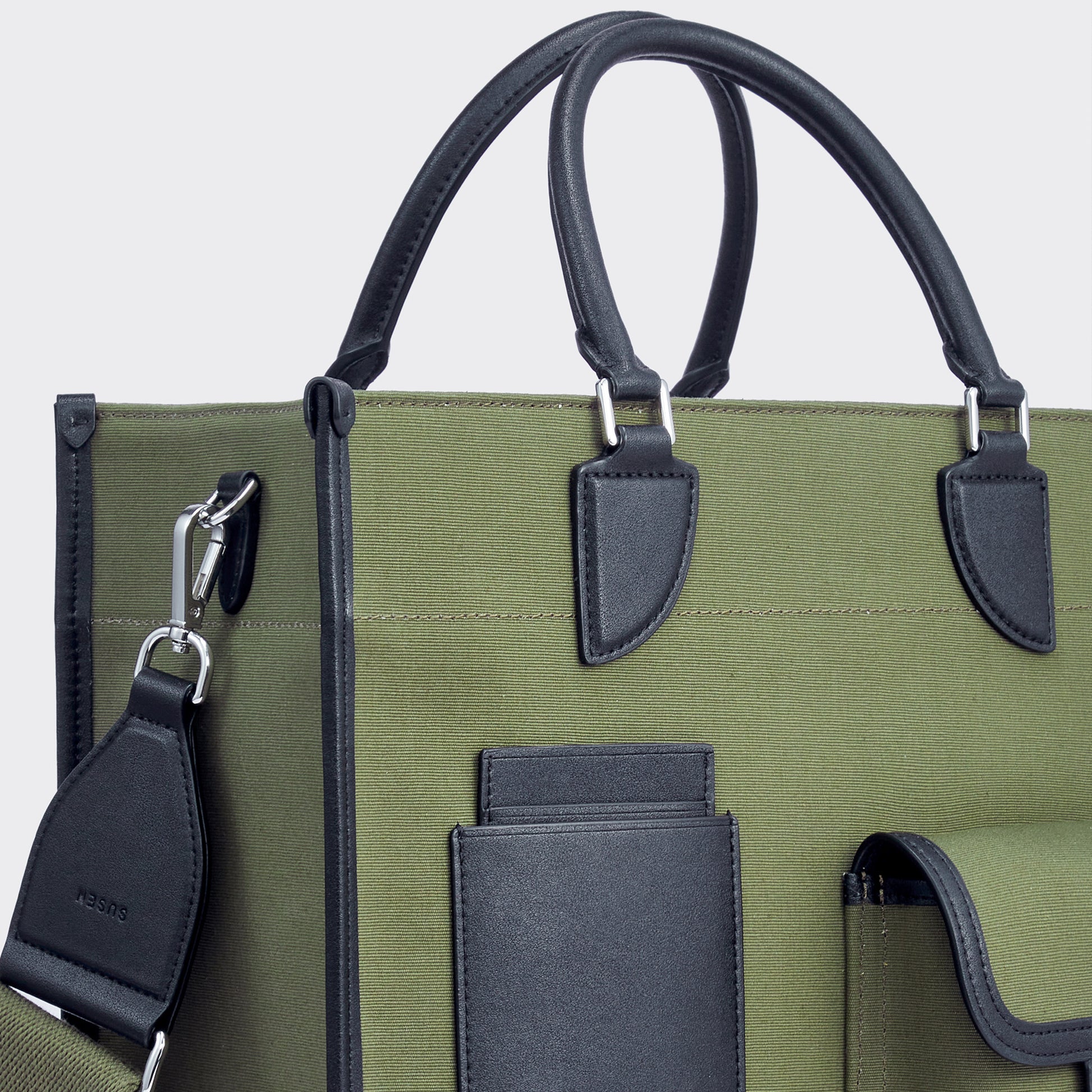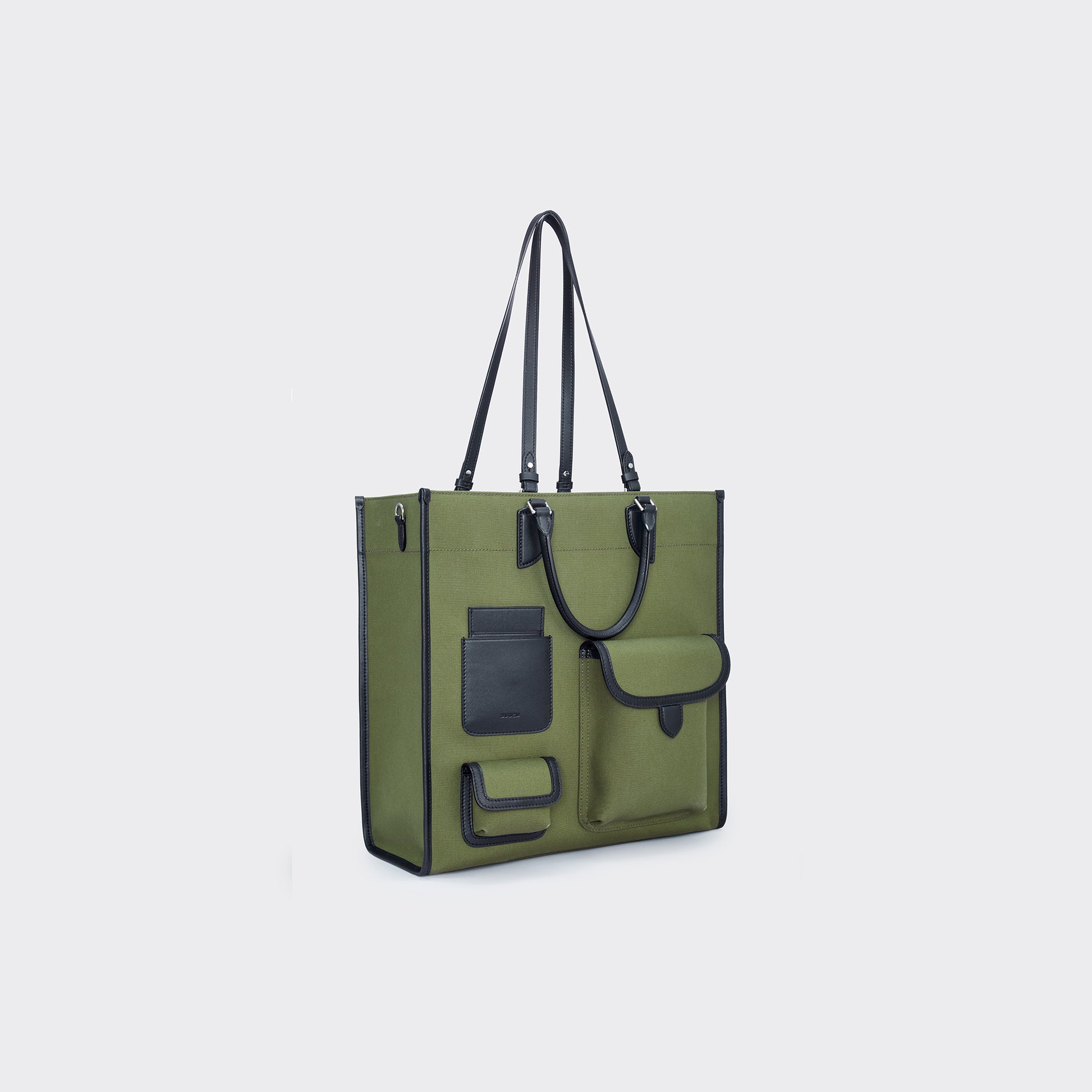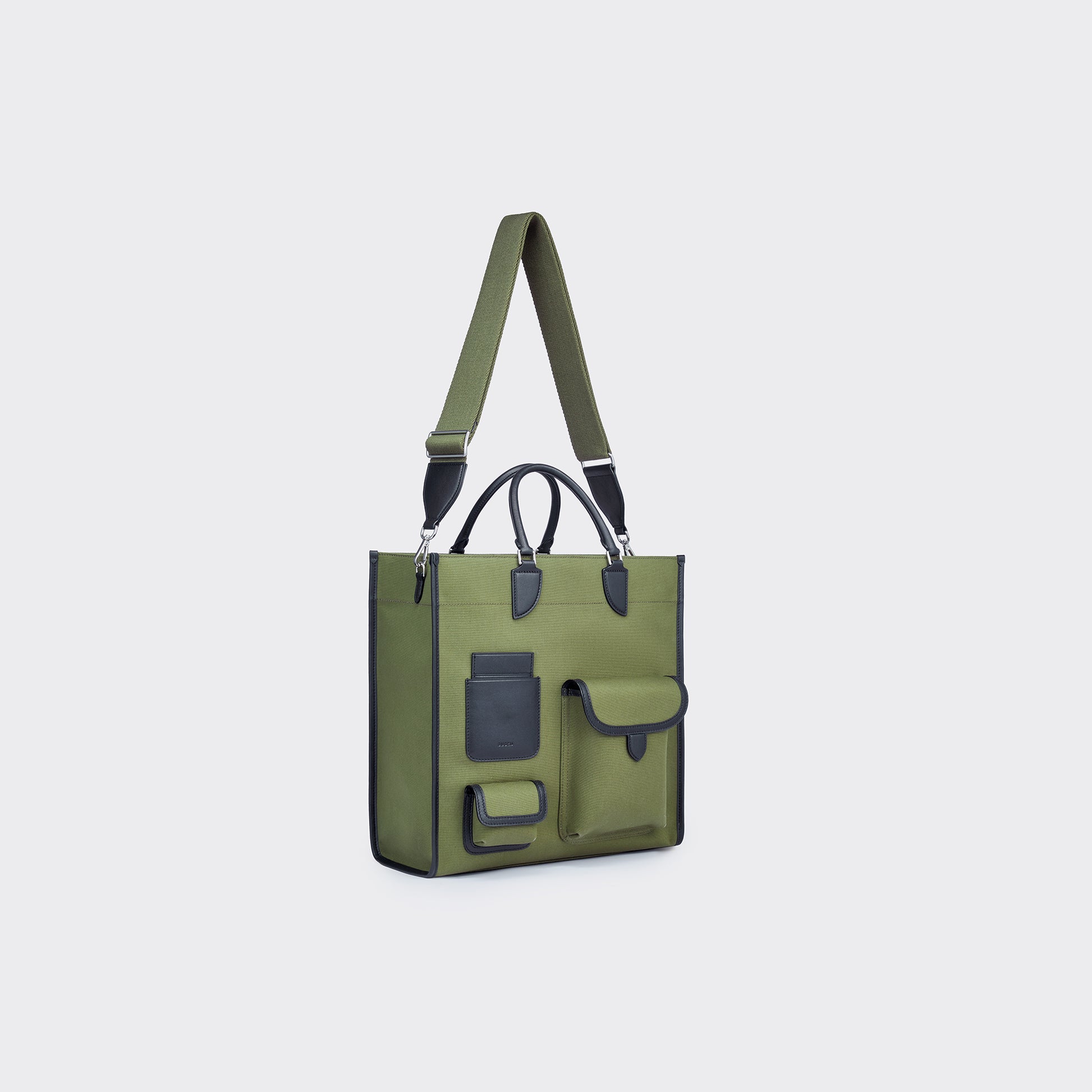 Gabriel Large Vertical Canvas Tote Bag - Military green