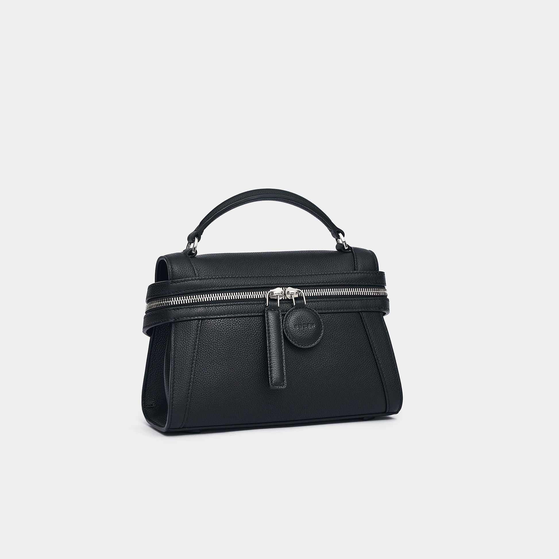 - The trapezoidal bag shape of black and white canvas, oil wax skin, and lychee grain cowhide were used; A brand new series paired with the current autumn and winter popular Maillard color scheme as a material.